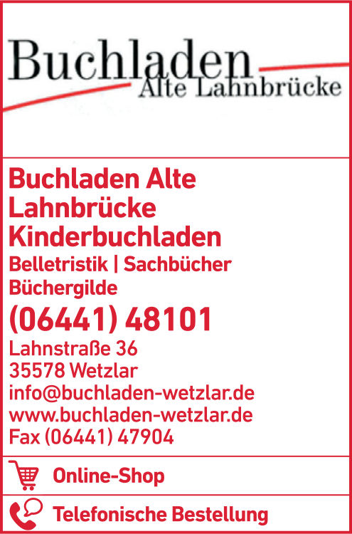Die Adresse von Alte Lahnbrücke Buchhandlung / Buchladen lautet: Lahnstr. 36, 35578 Wetzlar