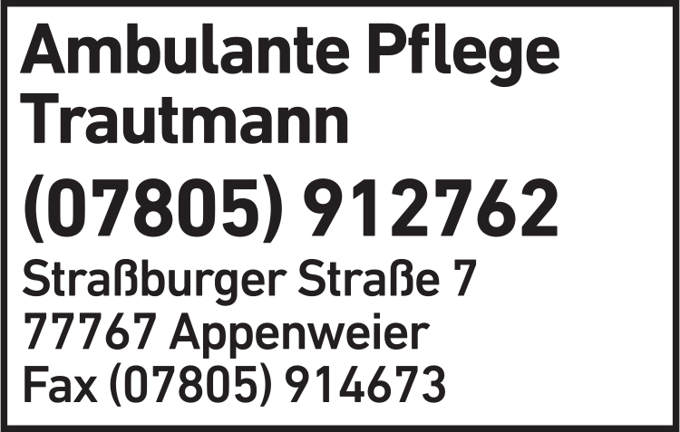 Ambulante Pflege Trautmann 07805 91 27 62 Appenweier Straßburger Str. 7 77767 Urloffen