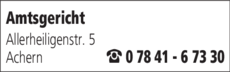 Die Adresse von Amtsgericht lautet: Allerheiligenstr. 5, 77855 Achern