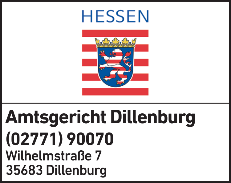 Die Adresse von Amtsgericht Dillenburg lautet: Wilhelmstr. 7, 35683 Dillenburg