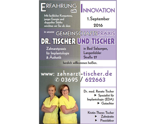 Dr. Tischer & Tischer Zahnärztinnen, Spezialistin für Implantologie *