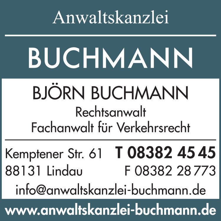 Die Adresse von Anwaltskanzlei Buchmann lautet: Kemptener Str. 61, 88131 Lindau (Bodensee)