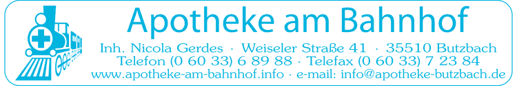 Die Adresse von Apotheke Am Bahnhof Inh. Nicola Gerdes Mutter+Kind Apotheke lautet: Weiseler Str. 41, 35510 Butzbach