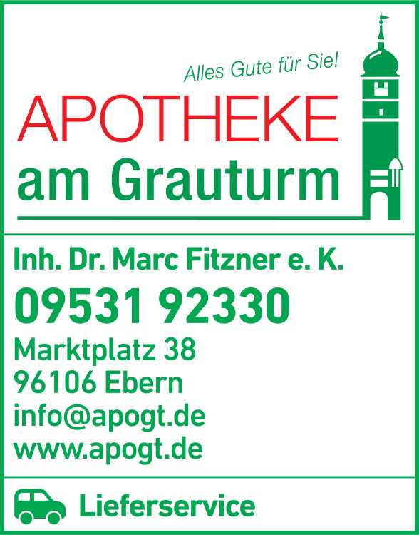 Die Adresse von Apotheke "Am Grauturm" Inh. Dr. Marc Fitzner e.K. lautet: Marktplatz 38, 96106 Ebern