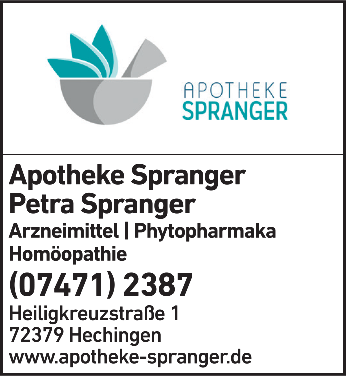 Die Adresse von Apotheke Spranger lautet: Heiligkreuzstr. 1, 72379 Hechingen