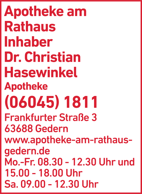 Die Adresse von Apotheke am Rathaus lautet: Frankfurter Str. 3, 63688 Gedern