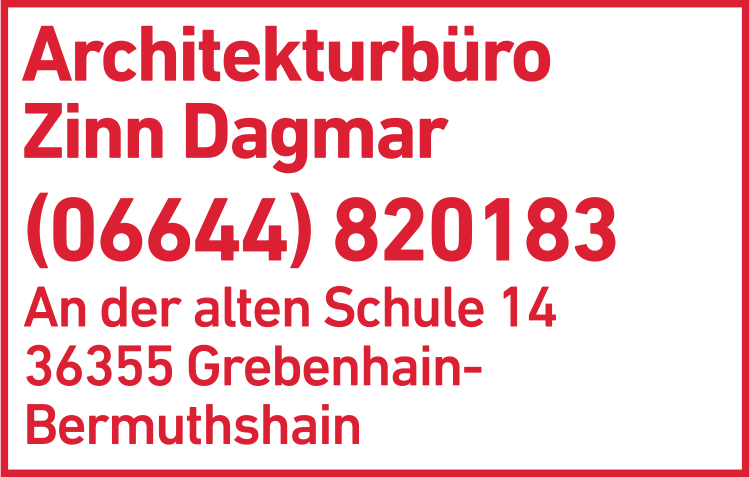 Architekturbüro Zinn Dagmar 06644 82 01 83 Grebenhain An der alten Schule 14 36355 Bermuthshain