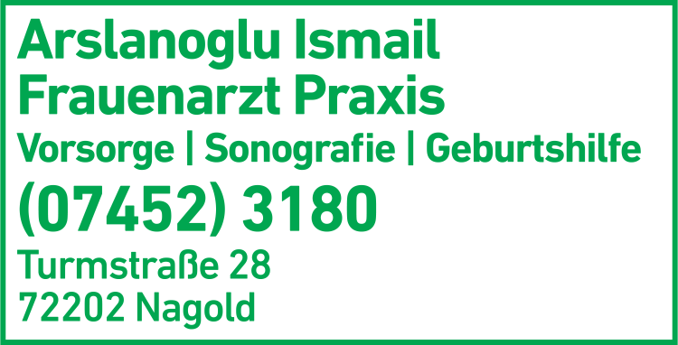 Die Adresse von Arslanoglu Ismail Frauenarzt lautet: Turmstr. 28, 72202 Nagold