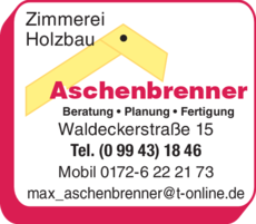 Aschenbrenner bietet Zimmerei, Holzbau, Beratung, Planung, Fertigung und Zimmereien an.