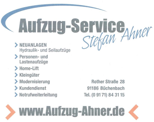Die Adresse von Aufzug-Service Ahner Aufzugskundendienst lautet: Rother Str. 28, 91186 Büchenbach