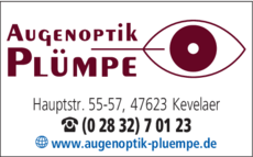 Die Adresse von Augenoptik Plümpe lautet: Hauptstr. 55-57, 47623 Kevelaer