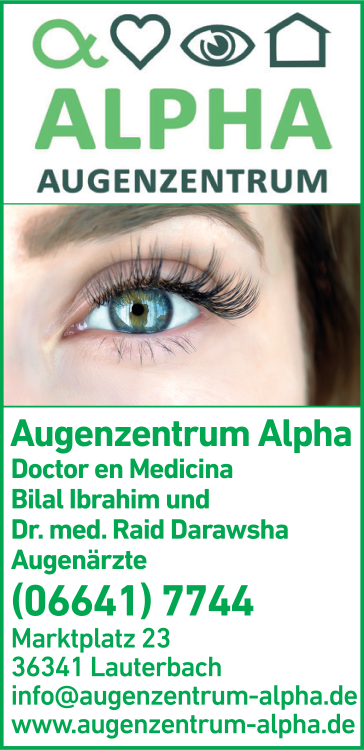 Die Adresse von Augenzentrum Alpha Dres. Bilal Ibrahim und Raif Darawsha lautet: Marktplatz 23, 36341 Lauterbach