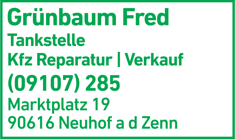 Die Adresse von Auto Grünbaum Kfz lautet: Marktplatz 19, 90616 Neuhof