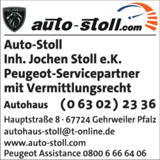 Die Adresse von Auto - Stoll lautet: Hauptstr. 8, 67724 Gehrweiler
