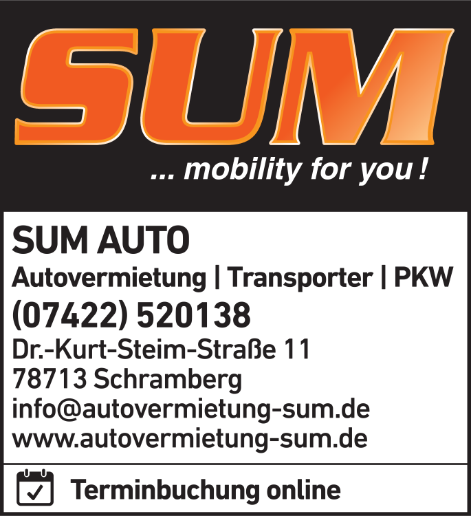 Die Adresse von Auto Sum - Autovermietung lautet: Dr.-Kurt-Steim-Str. 11, 78713 Schramberg
