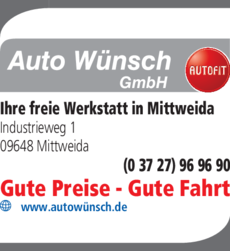 Die Adresse von Auto Wünsch lautet: Industrieweg 1, 09648 Mittweida