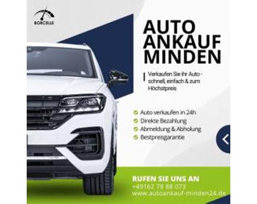 | Willkommen bei Autoankauf Minden 24, Ihrem vertrauenswürdigen Partner für den Ankauf von Gebrauchtwagen! Wir bieten Ihnen eine einfache, schnelle und faire Möglichkeit, Ihr Auto zu verkaufen. Unser erfahrenes Team bewertet Ihr Fahrzeug professionell und garantiert Ihnen einen attraktiven Preis. Egal, ob Ihr Auto alt oder neu, in gutem Zustand oder reparaturbedürftig ist - wir kaufen alle Marken und Modelle. Genießen Sie unseren erstklassigen Service und die unkomplizierte Abwicklung. |