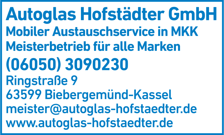 Autoglas Hofstädter GmbH - Die Autoglas Profis 06050 3 09 02 30 Biebergemünd-Kassel Ringstr. 9 63599 Kassel