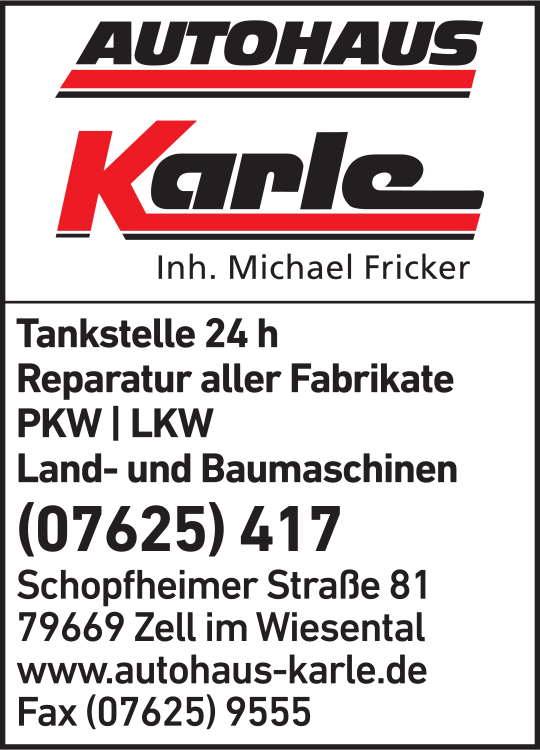 Die Adresse von Autohaus Karle Inh. Michael Fricker lautet: Schopfheimer Str. 81, 79669 Zell