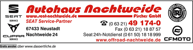Die Adresse von Autohaus Nachtweide GmbH lautet: Nachtweide 24, 67433 Neustadt an der Weinstraße