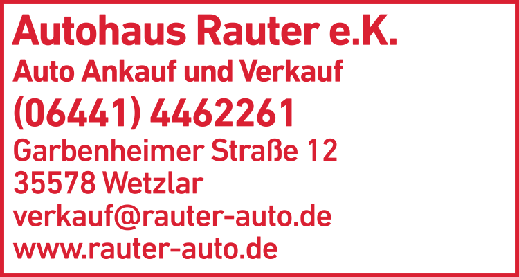 Die Adresse von Autohaus Rauter e.K. Kfz Ankauf und Verkauf lautet: Garbenheimer Str. 12, 35578 Wetzlar