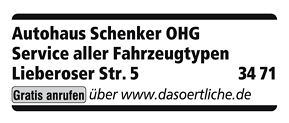 Autohaus Schenker OHG 03546 34 71 Lübben (Spreewald) Lieberoser Str. 5 15907 5 5 4
