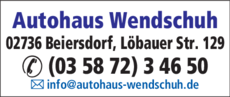 Autohaus Wendschuh 035872 3 46 50 Beiersdorf Löbauer Str. 129 02736 de.teleauskunft.oetb.webapp2.detail.Graphic@251f379 4.5 5 1