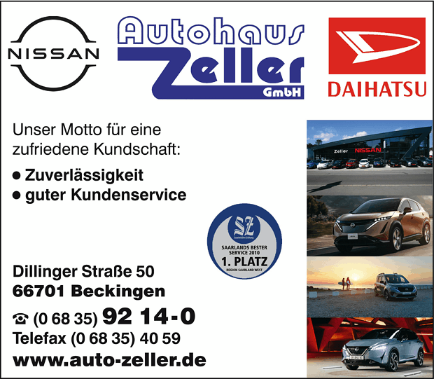 Autohaus Zeller GmbH führt die Marke(n) Daihatsu, Nissan, Micra, Juke, Pulsar, Qashqai, X-Trail, Navara, NV200 und NV300.