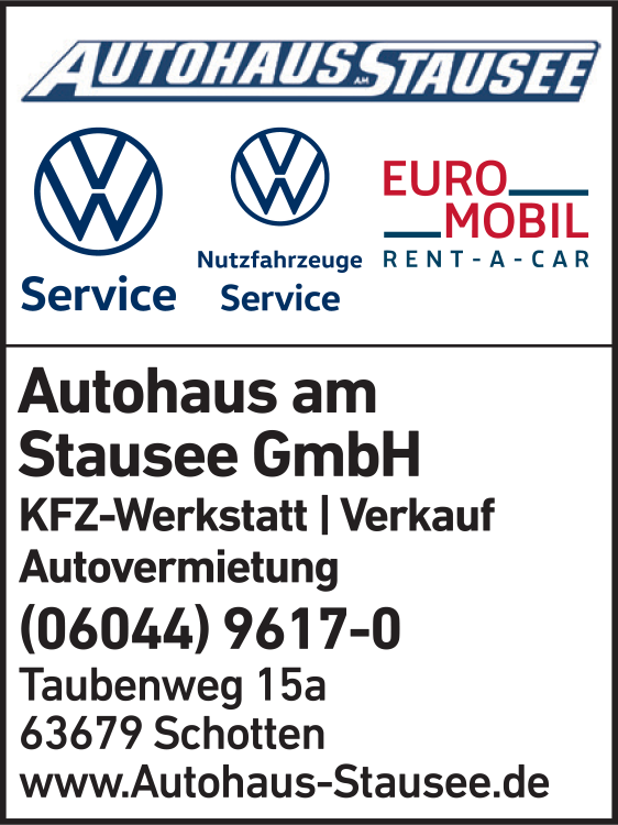 Die Adresse von Autohaus am Stausee GmbH lautet: Taubenweg 15 A, 63679 Schotten