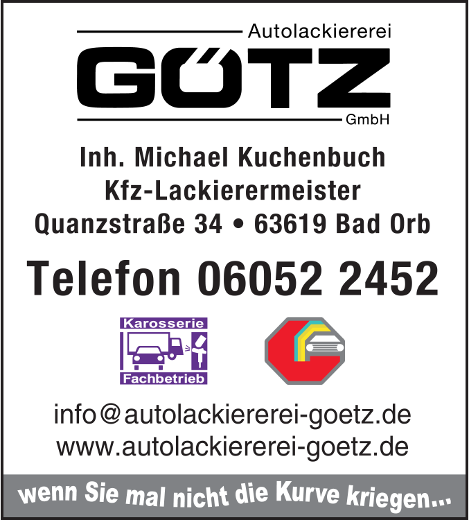 Die Adresse von Autolackiererei Götz GmbH lautet: Quanzstr. 34, 63619 Bad Orb
