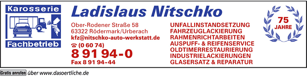 Die Adresse von Autolackiererei Nitschko lautet: Ober-Rodener-Str. 58, 63322 Rödermark