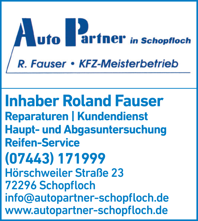 Die Adresse von Autoreparaturen Fauser Roland KFZ-Meisterbetrieb lautet: Hörschweiler Str. 23, 72296 Schopfloch