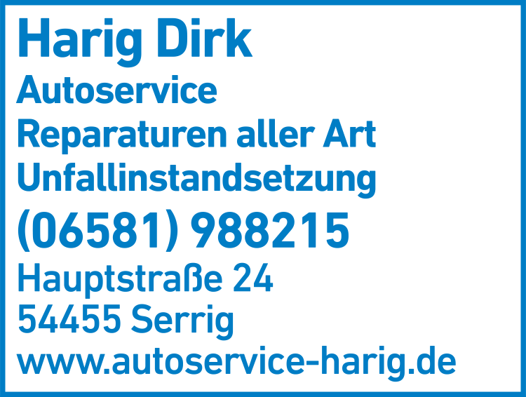 Die Adresse von Autoservice Harig, Dirk Harig Kfz-Meister Autowerkstatt alle Marken lautet: Hauptstr. 24, 54455 Serrig