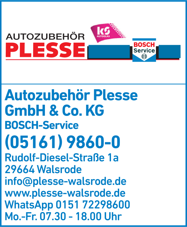 Die Adresse von Autozubehör Plesse GmbH & Co KG lautet: Rudolf-Diesel-Str. 1 A, 29664 Walsrode