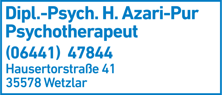 Wie lautet die Adresse von Azari-Pur Huschang Dipl.-Psych. Praxis?