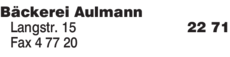 Wie lautet die Adresse von Bäckerei Aulmann?