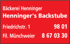 Bäckerei Henninger 07822 98 01 Ettenheim Friedrichstr. 1 77955