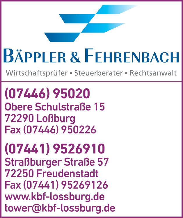 Die Adresse von Bäppler & Fehrenbach lautet: Obere Schulstr. 15, 72290 Loßburg