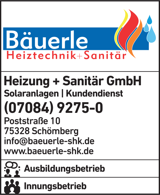 Die Adresse von Bäuerle Heiztechnik u. Sanitär GmbH lautet: Poststr. 10, 75328 Schömberg