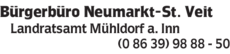 Bürgerbüro Neumarkt-St. Veit 08639 98 88-50 Neumarkt-St. Veit 84494 https://ies.v4all.de/0122/OETB/0106/3/5023/7395023_200x100px.png