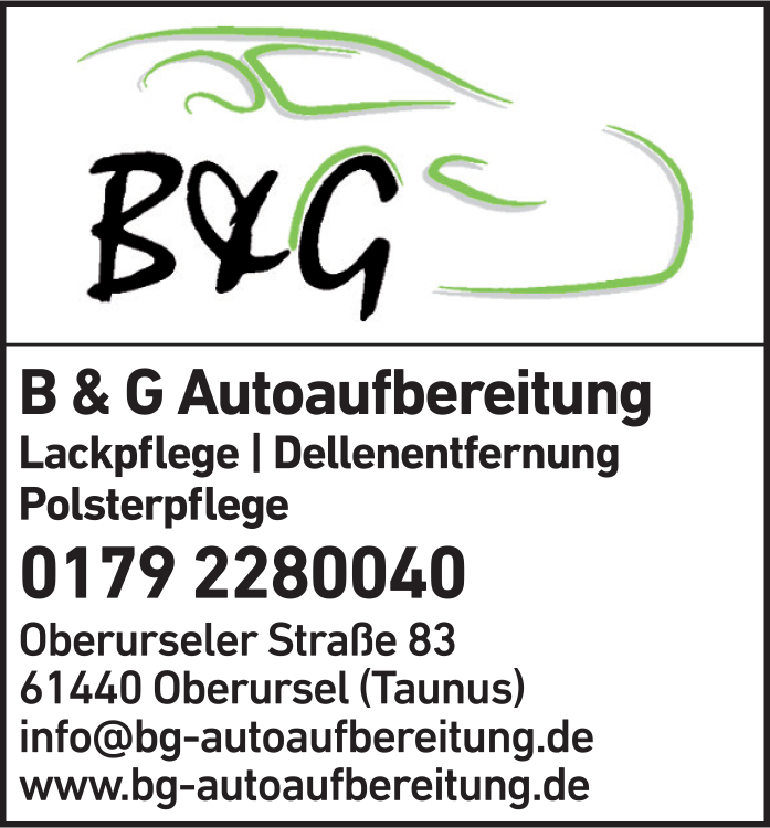 Die Adresse von B & G Fahrzeugaufbereitung lautet: Oberurseler Str. 83, 61440 Oberursel