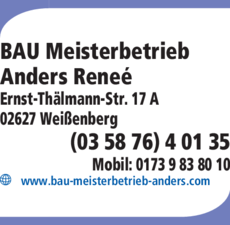 BAU - Meisterbetrieb Anders Reneé 035876 4 01 35 Weißenberg Ernst-Thälmann-Str. 17 a 02627 de.teleauskunft.oetb.webapp2.detail.Graphic@3968a4fa