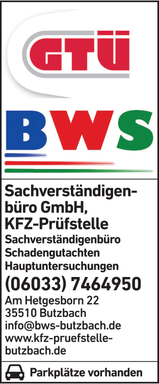 Die Adresse von BWS Sachverständigenbüro GmbH, KFZ-Prüfstelle lautet: Am Hetgesborn 22, 35510 Butzbach