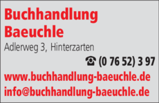 Die Adresse von Baeuchle Inge lautet: Adlerweg 3, 79856 Hinterzarten