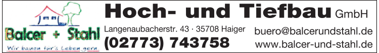 Die Adresse von Balcer u. Stahl GmbH Hoch- und Tiefbau lautet: Langenaubacher Str. 43, 35708 Haiger
