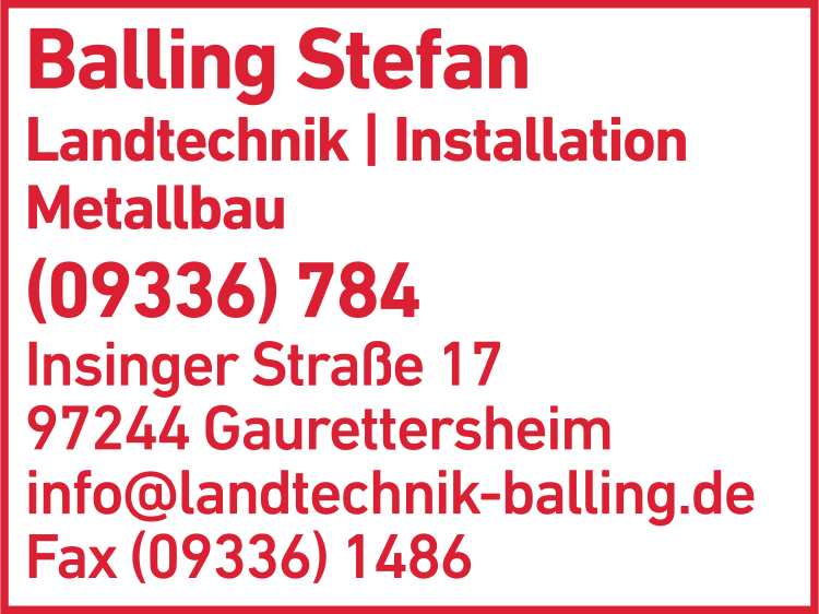 Die Adresse von Balling Stefan Landtechnik lautet: Insinger Str. 17, 97244 Bütthard-Gaurettersheim