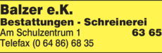 Die Adresse von Balzer e.K. Bestattungen lautet: Am Schulzentrum 1, 56368 Katzenelnbogen