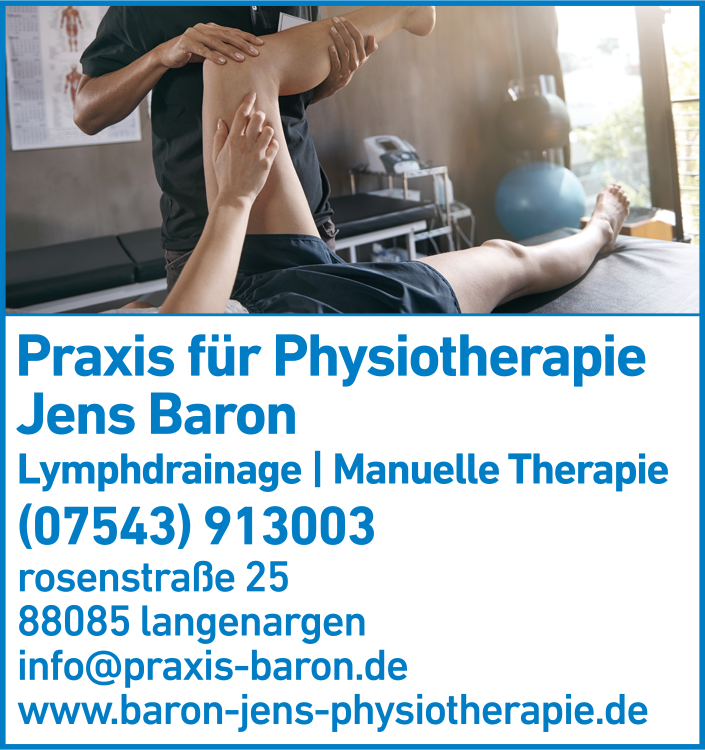 Baron Jens Praxis für Physiotherapie 07543 91 30 03 Langenargen Rosenstr. 25 88085