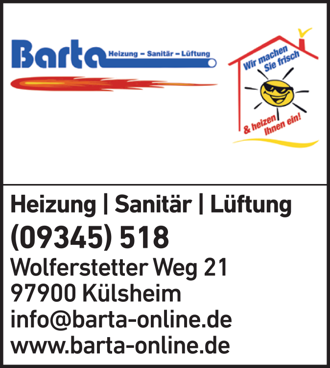 Barta Sanitär-Installationen GmbH 09345 5 18 Külsheim Wolferstetter Weg 21 97900