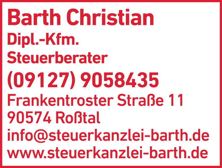 Barth Christian Dipl. - Kfm. Steuerberater 09127 9 05 84 35 Roßtal Frankentroster Str. 11 90574